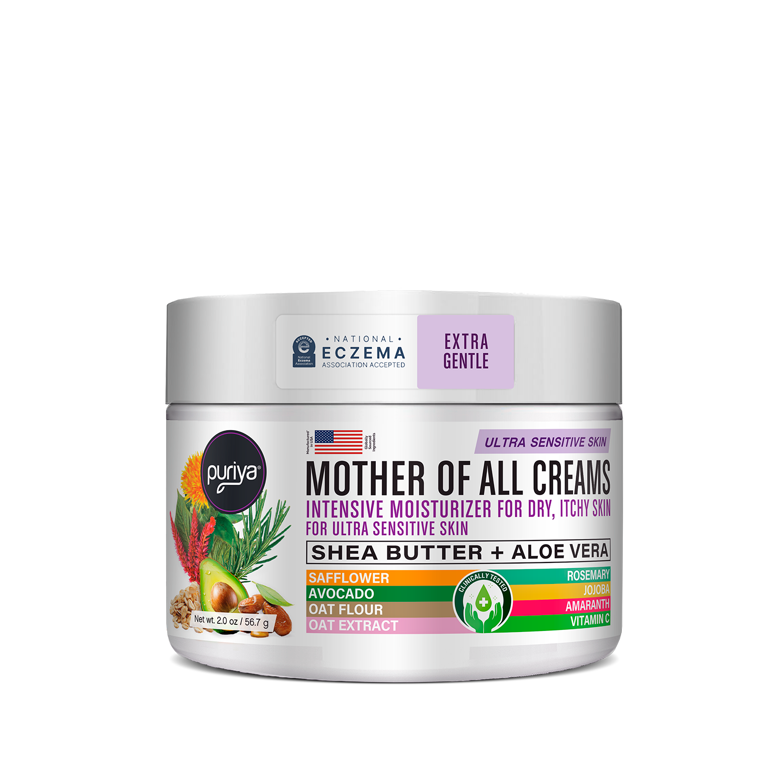 Water, Aloe Barbadensis (Aloe Vera) Leaf Juice, Carthamus Tinctorius (Safflower) Seed Oil, Butyrospermum Parkii (Shea) Butter, Persea Gratissima (Avocado) Oil, Glycerin*, Behentrimonium Methosulfate*, Cetearyl Alcohol NF*, Amaranthus Caudatus (Amaranth) Seed Oil, Stearic Acid NF*, Hyaluronic Acid, Avena Sativa (Oat) Kernel Flour, Avena Sativa (Oat) Kernel Extract, Simmondsia Chinensis (Jojoba) Seed Oil, Honey, Rosmarinus Officinalis (Rosemary) Leaf Extract, Methylsulfonylmethane* (MSM), Ascorbyl Palmitate (Vitamin C), Caprylyl Glycol*, Hexylene Glycol, Potassium, Sorbate, Phenoxyethanol, *Derived from plant sources